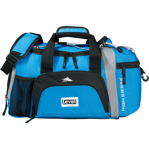 Featuring multiple storage compartments, including an end pocket with headphone port and roll away mesh wet pocket, plus other great features like an elastic shook cord and large clip for attaching extra gear, the High Sierra Switch Blade Duffel doesn t care whether you re more familiar with the treadmill the rugged back-country; you re set either way.
