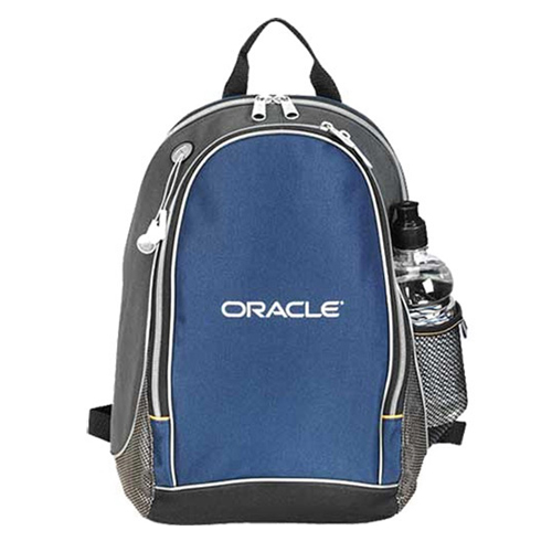 This fun and funky custom backpack features front zippered compartment with organizer, mesh water bottle pocket, zippered main compartment with interior digital music player, pocket headphone port, fully padded back, padded adjustable shoulder straps, and a carrying handle on top. It s just what your clients need to get organized and be noticed on all their daily travels!