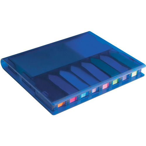 When the lid of these promotional memo holders is flipped open your recipient is going to find eight sticky flags in a variety of bright, neon colors and various sticky memo pads too.