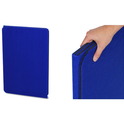 - Attach signs, photos, or other visual graphics to Velcro receptive fabric panels on the front and back of the display.