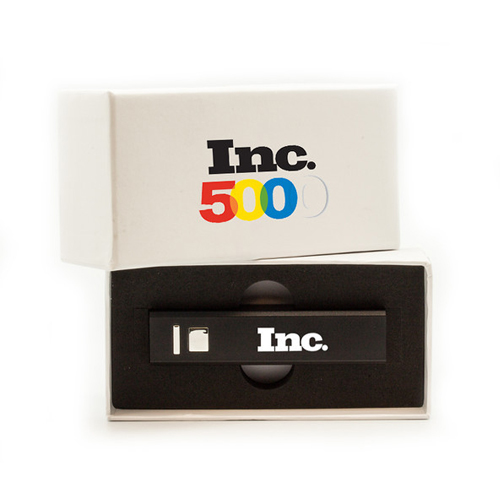 It has a durable aluminum shell in a slim rectangle shape featuring large imprint surface. Standard imprint is one location but up to four different logos can be imprinted - one to each side.